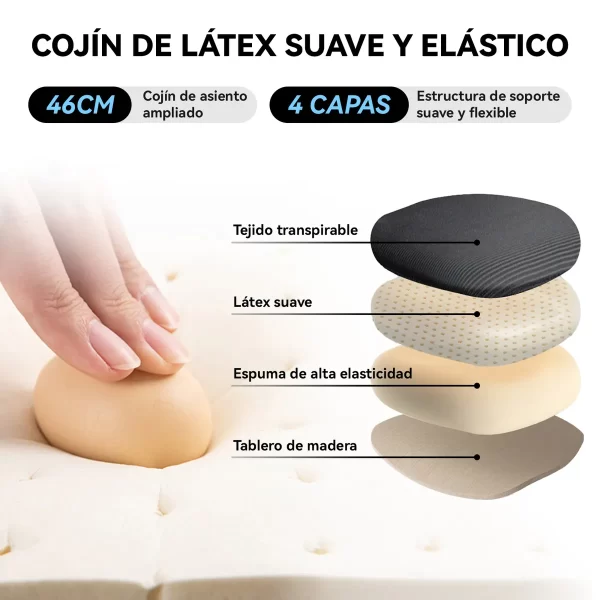 Asiento de Memoria: El asiento de memoria se ajusta ergonómicamente a tu cuerpo, ofreciendo un soporte personalizado y una comodidad inigualable para largas jornadas de trabajo.